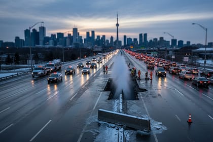டொராண்டோ மாநகரின் மிக முக்கியமான போக்குவரத்து நரம்பாகக் கருதப்படும் கார்டினர் எக்ஸ்பிரஸ்வே (Gardiner Expressway) பகுதியில் இன்று காலை ஏற்பட்ட பிரதான நீர் குழாய் உடைப்பு காரணமாக, நகரின் போக்குவரத்து ஒட...