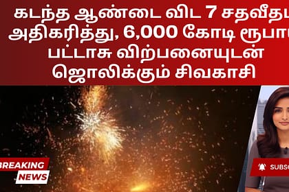 சிவகாசியின் பட்டாசுத் தொழில் தீபாவளி சீசனை வெற்றிகரமாகக் கண்டுள்ளது, விற்பனை ரூ. 6,000 கோடியைத் தாண்டியுள்ளது. இது முந்தைய ஆண்டை விட தோராயமாக 5% முதல் 7% அதிகரித்துள்ளது. இந்திய பட்டாசு உற்பத்தியாளர்க...