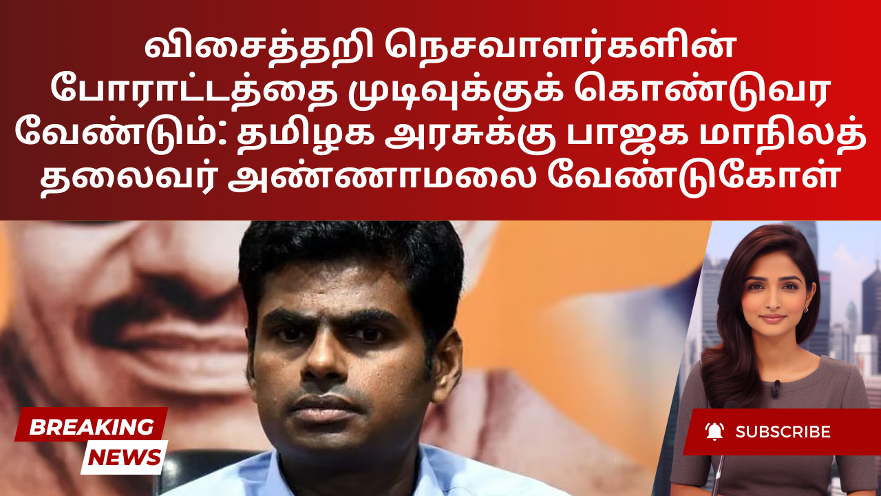 கோவை மற்றும் திருப்பூர் மாவட்டங்களில் கிட்டத்தட்ட இரண்டு வாரங்களாக வேலைநிறுத்தத்தில் ஈடுபட்டுள்ள விசைத்தறி நெசவாளர்களின் கவலைகளை நிவர்த்தி செய்யுமாறு பாஜக மாநிலத் தலைவர் கே அண்ணாமலை தமிழக அரசைக் கேட்ட...
