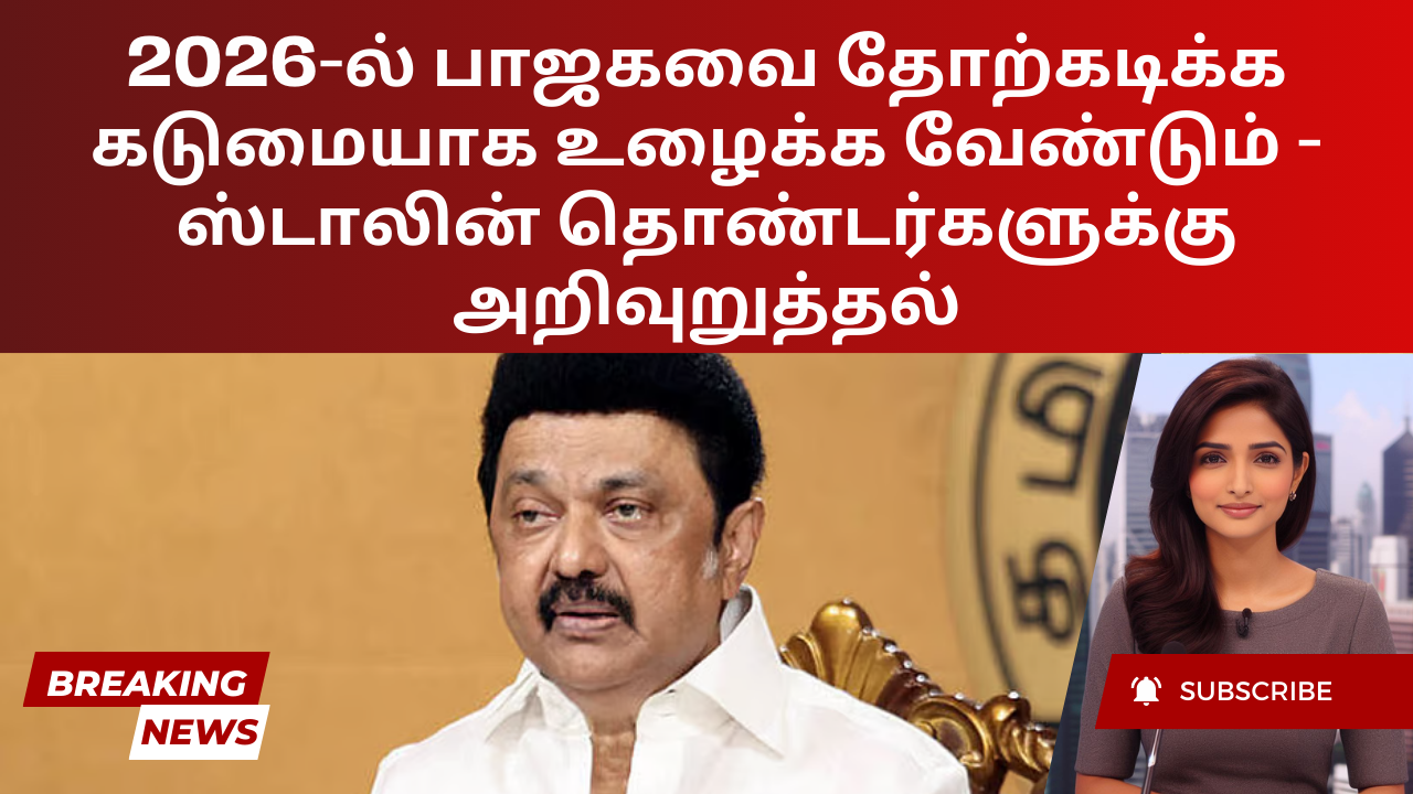 2026 சட்டமன்றத் தேர்தலில் பாஜகவை தோற்கடிக்க கட்சித் தொண்டர்கள் விடாமுயற்சியுடன் பாடுபட வேண்டும் என்று திமுக தலைவரும் தமிழக முதல்வருமான மு க ஸ்டாலின் வலியுறுத்தியுள்ளார். ஈரோடு தெற்கு மாவட்ட திமுக பிரி...