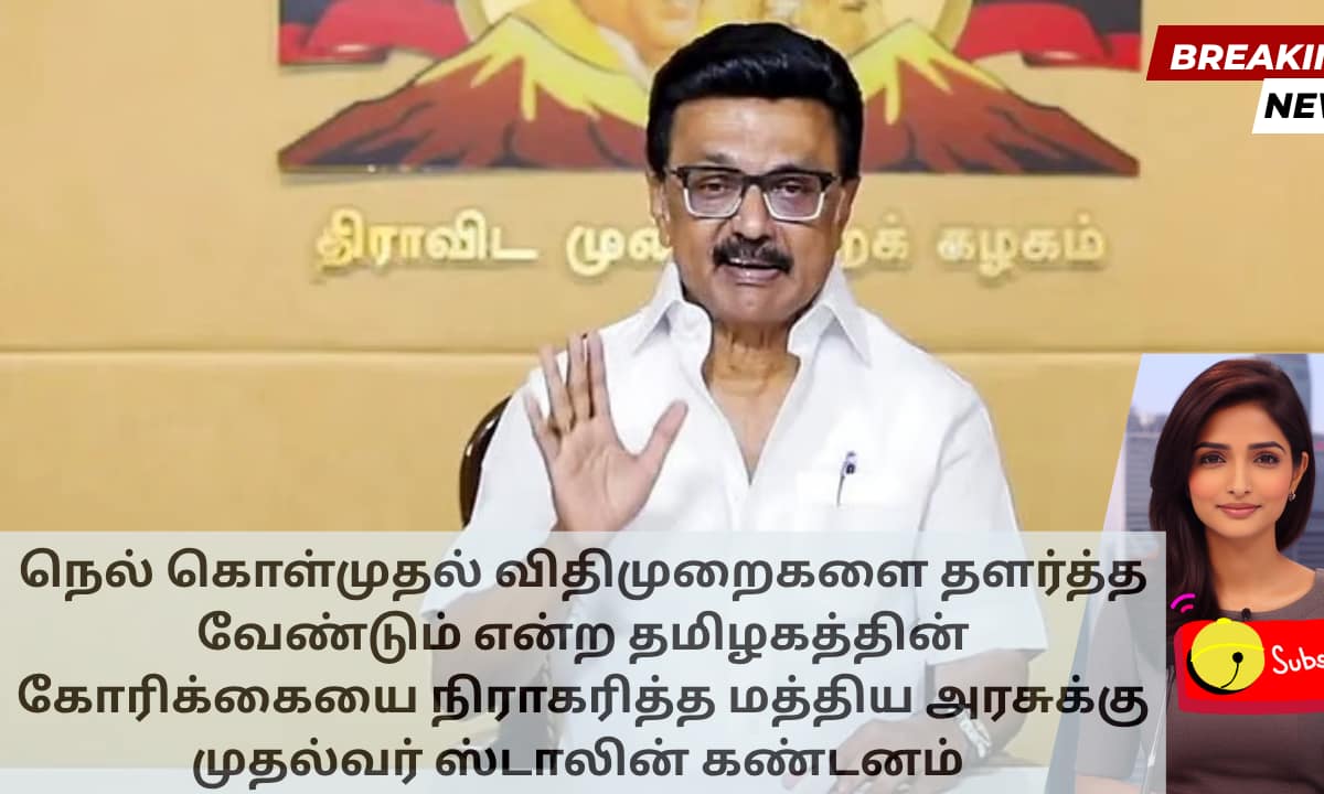 நெல் கொள்முதல் விதிமுறைகளை தளர்த்த வேண்டும் என்ற தமிழகத்தின் கோரிக்கையை நிராகரித்த மத்திய அரசுக்கு முதல்வர் ஸ்டாலின் கண்டனம்