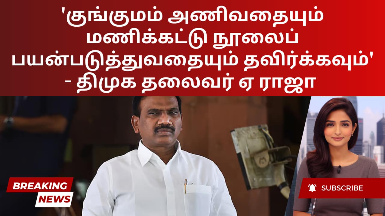 ‘குங்குமம் அணிவதையும் மணிக்கட்டு நூலைப் பயன்படுத்துவதையும் தவிர்க்கவும்’ – திமுக தலைவர் ஏ ராஜா