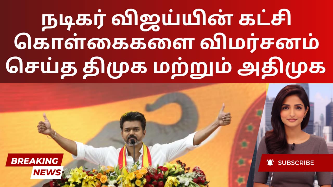 நடிகர் விஜய்யின் கட்சி கொள்கைகளை விமர்சனம் செய்த திமுக மற்றும் அதிமுக