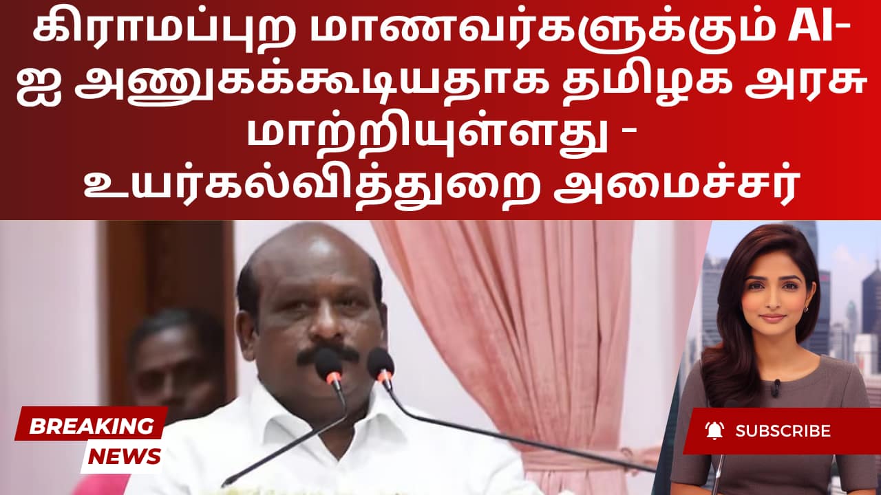 கிராமப்புற மாணவர்களுக்கும் AI-ஐ அணுகக்கூடியதாக தமிழக அரசு மாற்றியுள்ளது – உயர்கல்வித்துறை அமைச்சர்