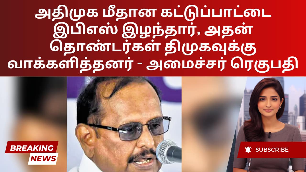 அதிமுக மீதான கட்டுப்பாட்டை இபிஎஸ் இழந்தார், அதன் தொண்டர்கள் திமுகவுக்கு வாக்களித்தனர் – அமைச்சர் ரெகுபதி