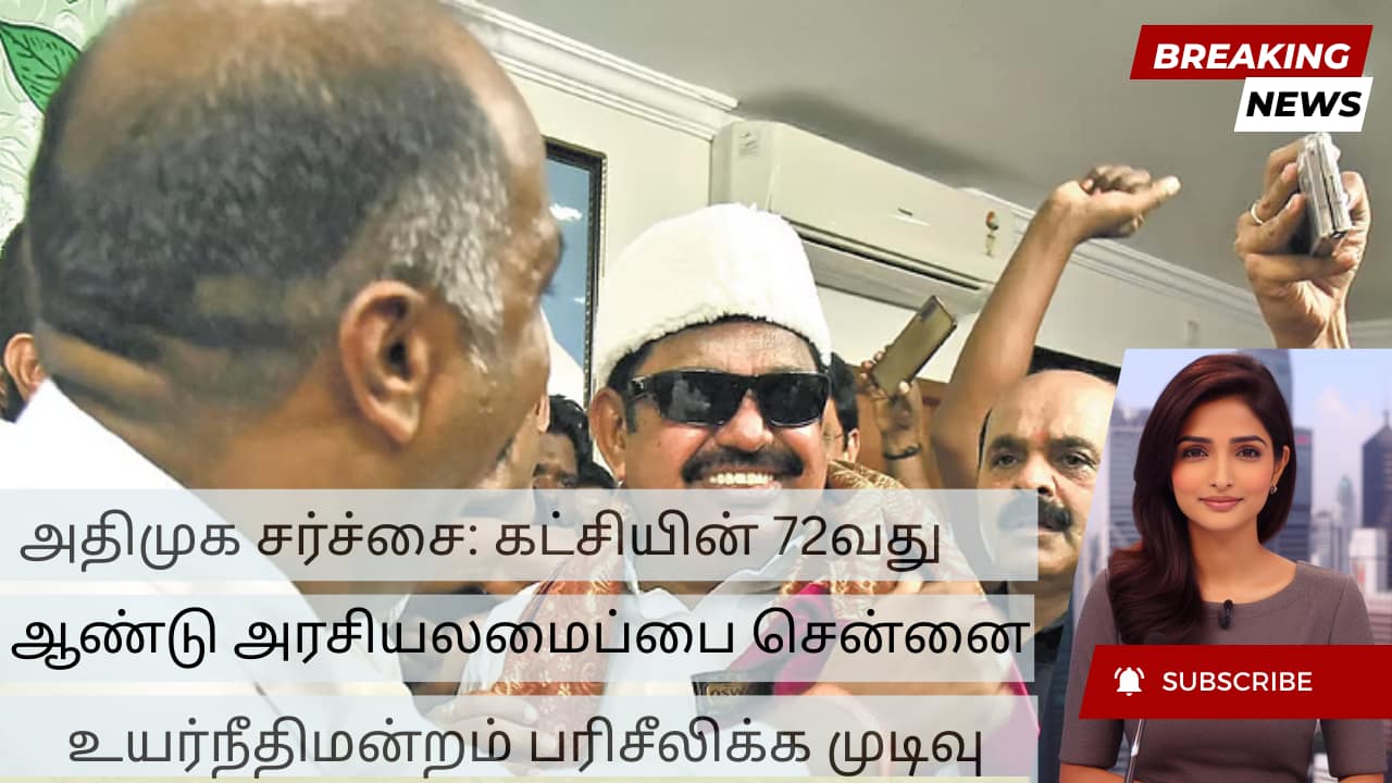 அதிமுக சர்ச்சை: கட்சியின் 72வது ஆண்டு அரசியலமைப்பை சென்னை உயர்நீதிமன்றம் பரிசீலிக்க முடிவு