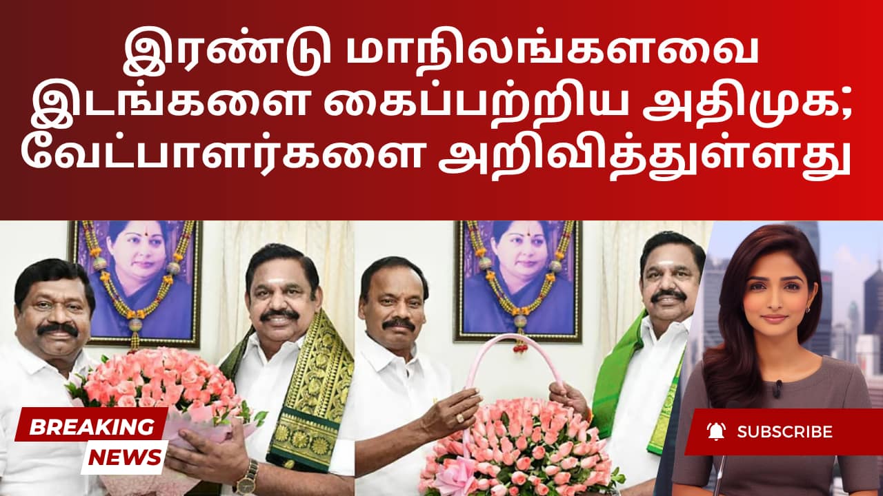 இரண்டு மாநிலங்களவை இடங்களை கைப்பற்றிய அதிமுக; வேட்பாளர்களை அறிவித்துள்ளது