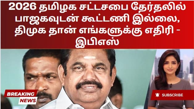 வரவிருக்கும் 2026 தமிழ்நாடு சட்டமன்றத் தேர்தலில் பாஜகவுடன் கூட்டணி அமைக்கப் போவதில்லை என்ற கட்சியின் நிலைப்பாட்டை முன்னாள் முதல்வரும் அதிமுக பொதுச் செயலாளருமான எடப்பாடி கே பழனிசாமி மீண்டும் உறுதிப்படுத்தினார். கோவை சர்வதேச விமான நிலையத்தில் பேசிய இபிஎஸ், “மக்கள் விரோத அரசு” என்று வர்ணித்த திமுகவை வீழ்த்துவதே அதிமுகவின் முதன்மை இலக்கு என்று கூறினார். பாஜகவுடன் கூட்டணி சாத்தியம் என்ற ஊகங்களை நிராகரித்த அவர், அதிமுகவின் முக்கிய எதிரியாக திமுகவே தொடர்கிறது என்று வலியுறுத்தினார்.