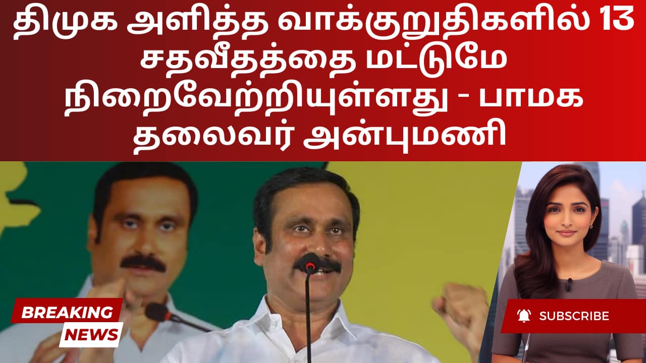 திமுக அளித்த வாக்குறுதிகளில் 13 சதவீதத்தை மட்டுமே நிறைவேற்றியுள்ளது – பாமக தலைவர் அன்புமணி