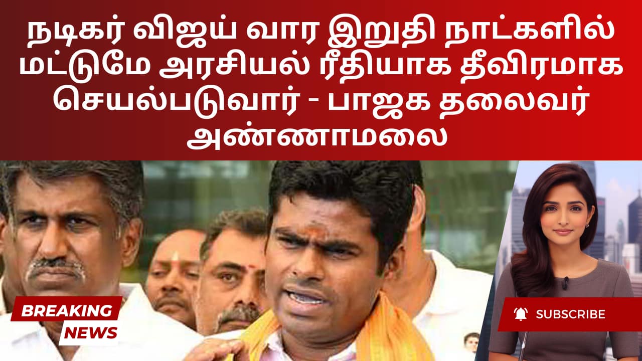 நடிகர் விஜய் வார இறுதி நாட்களில் மட்டுமே அரசியல் ரீதியாக தீவிரமாக செயல்படுவார் – பாஜக தலைவர் அண்ணாமலை