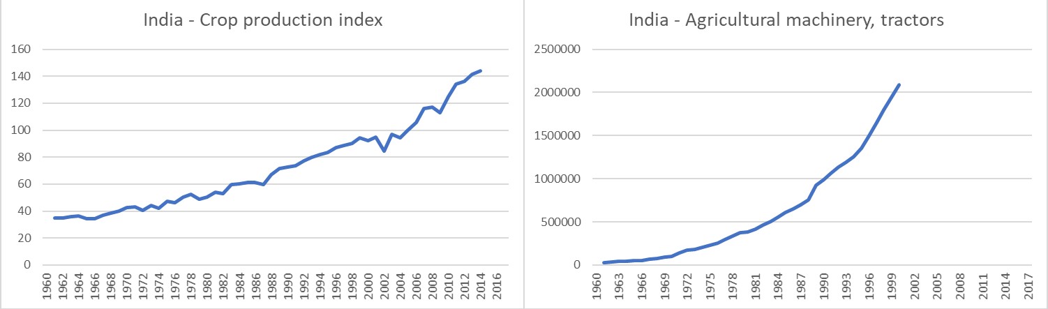 இந்த அசுர வளர்ச்சியினால், இந்தியாவில் தேவைக்கு அதிகமாக உணவு இருக்கிறது (2) என சமீபத்திய ஆய்வில் தெரியவந்துள்ளது. 2010 ஆம் ஆண்டில், உலகளவில் 20% தேவைக்கு அதிகமாக உணவு உற்பத்தி இருந்தது (2). இது மட்டுமல்லாமல், உணவு விரயமும் அச்சம் தரும் அளவிற்கு அதிகரித்துள்ளதை இந்த ஆய்வு உறுதிப்படுத்தியுள்ளது (2).