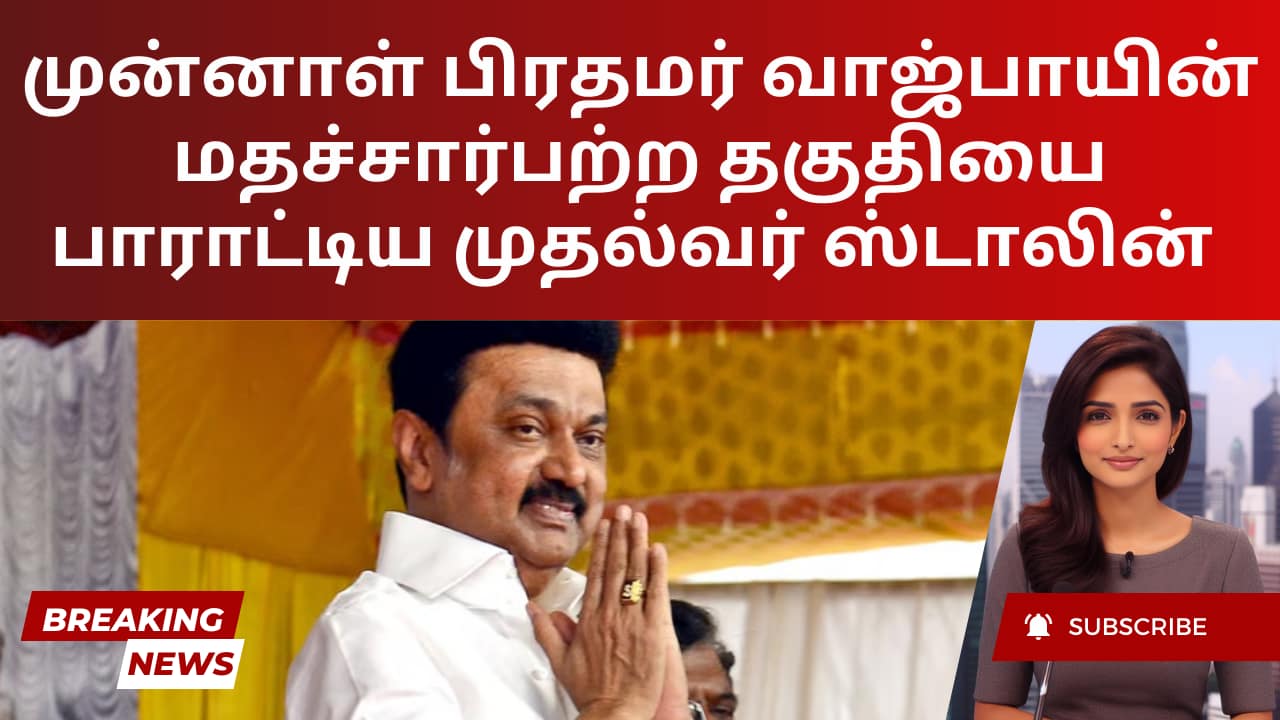 முன்னாள் பிரதமர் வாஜ்பாயின் மதச்சார்பற்ற தகுதியை பாராட்டிய முதல்வர் ஸ்டாலின்