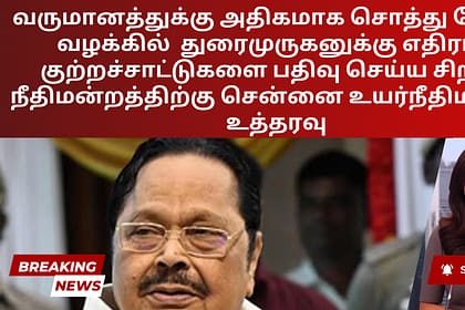 வருமானத்திற்கு அதிகமாக சொத்து சேர்த்த வழக்கில் திமுக மூத்த தலைவரும், தமிழக அமைச்சருமான துரைமுருகனை விடுவித்த உள்ளூர் நீதிமன்றம் பிறப்பித்த முந்தைய உத்தரவை வியாழக்கிழமை சென்னை உயர் நீதிமன்றம் ரத்து செய...