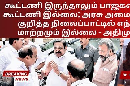 பாஜக தலைமையிலான தேசிய ஜனநாயகக் கூட்டணியில் சமீபத்தில் மீண்டும் இணைந்த போதிலும், பாஜகவுடனான கூட்டணி அரசாங்கத்தில் தனது கட்சி பங்கேற்காது என்று அதிமுக பொதுச் செயலாளர் எடப்பாடி கே பழனிசாமி புதன்கிழமை உறு...