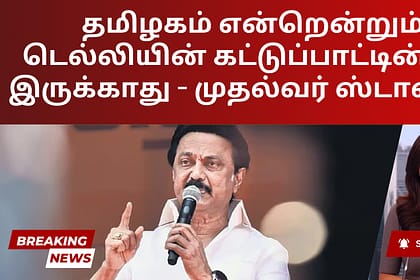 திருவள்ளூர் மாவட்டம் பொன்னேரியில் நடந்த அரசு நிகழ்வின் போது பாஜகவை கடுமையாக விமர்சித்த முதலமைச்சர் ஸ்டாலின், டெல்லியில் மத்திய அரசின் “கட்டுப்பாட்டை மீறி” தமிழ்நாடு எப்போதும் இருக்கும் என்...