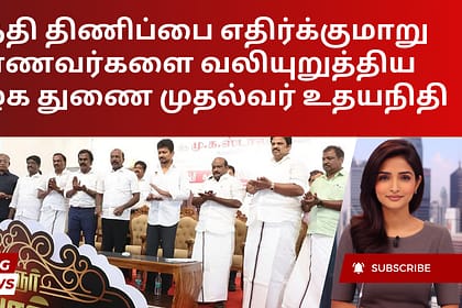 தமிழ்நாடு துணை முதல்வர் உதயநிதி ஸ்டாலின் ஞாயிற்றுக்கிழமை, மாணவர்கள் இந்தி திணிப்புக்கு எதிராக விழிப்புடன் இருக்கவும், திராவிட இயக்கத்தின் மதிப்புகளை நிலைநிறுத்தவும் வலியுறுத்தினார். நந்தனம் அரசு ஆண்கள...