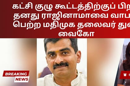 ஒரு வியத்தகு திருப்பமாக, ஞாயிற்றுக்கிழமை நடைபெற்ற ஒரு முக்கிய கட்சிக் கூட்டத்திற்குப் பிறகு, மதிமுக முதன்மைச் செயலாளர் துரை வைகோ தனது ராஜினாமாவை வாபஸ் பெற்றார். கட்சியின் மாவட்டச் செயலாளர்கள் மற்றும் ...