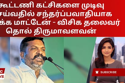 ஞாயிற்றுக்கிழமை ஒரு வீடியோ செய்தியில், கொள்கை ரீதியான கூட்டணி அரசியலுக்கான தனது கட்சியின் உறுதிப்பாட்டை VCK தலைவர் தொல் திருமாவளவன் மீண்டும் உறுதிப்படுத்தினார். பேஸ்புக் நேரடி அமர்வின் மூலம் தொண்டர்கள...
