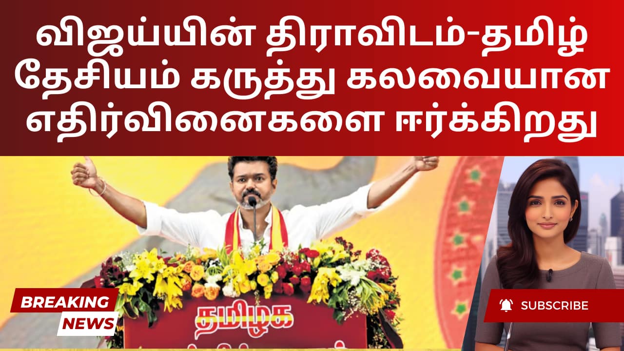 TVK தலைவர் விஜய், சமீபத்தில் சென்னையில் கட்சி அறிக்கையின் போது திராவிட சித்தாந்தத்தையும் தமிழ் தேசியத்தையும் சமன்படுத்தி, “தனது இரு கண்கள்” என்று அரசியல் ஆய்வாளர்கள் மத்தியில் கலவையான எதிர்வினைகளைத் தூண்டினார். இந்த அறிவிப்பு குறிப்பாக தமிழ் தேசியவாதிகள் மற்றும் திராவிட சித்தாந்தவாதிகள் மத்தியில் விவாதத்தை கிளப்பியுள்ளது. அவரது முன்னோக்கு தமிழ்நாட்டின் முக்கிய அரசியல் குரல்களிடமிருந்து பிரிக்கப்பட்ட பதில்களுக்கு வழிவகுத்தது.