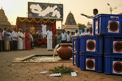 தமிழகத்தில் ஆளும் திமுக அரசு, மத்திய அரசின் திட்டங்களுக்கு ‘திராவிட மாடல்’ என்று ஸ்டிக்கர் ஒட்டி தனது சொந்தத் திட்டங்கள் போலக் காட்டிக் கொள்வதாகவும், மாநிலத்தில் போதைப்பொருள் நடமாட்டம் கட்...