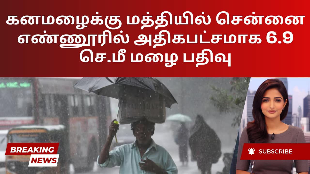 கனமழைக்கு மத்தியில் சென்னை எண்ணூரில் அதிகபட்சமாக 6.9 செ.மீ மழை பதிவு
