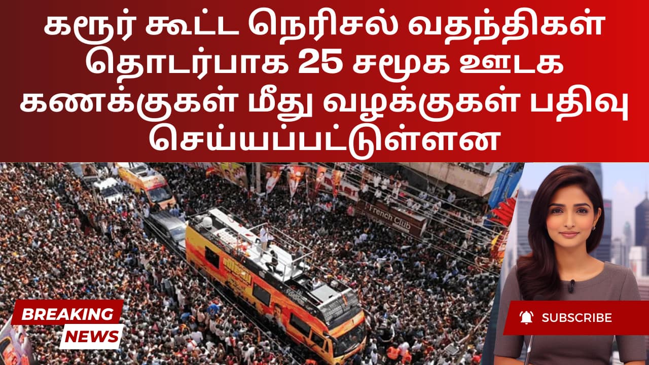 கரூர் கூட்ட நெரிசல் வதந்திகள் தொடர்பாக 25 சமூக ஊடக கணக்குகள் மீது வழக்குகள் பதிவு செய்யப்பட்டுள்ளன