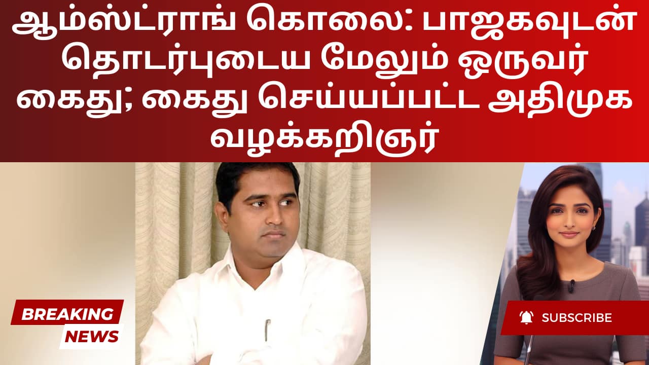 ஆம்ஸ்ட்ராங் கொலை: பாஜகவுடன் தொடர்புடைய மேலும் ஒருவர் கைது; கைது செய்யப்பட்ட அதிமுக வழக்கறிஞர்