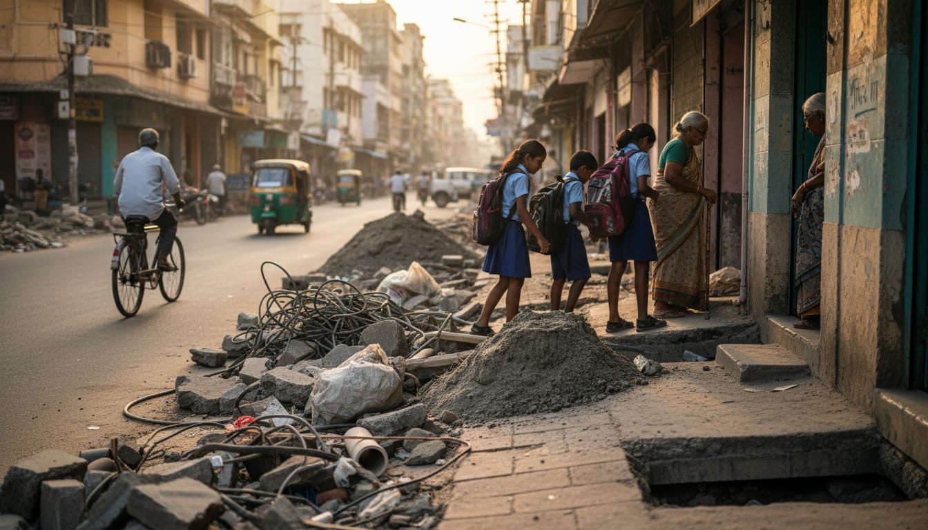 சாலையின் பெரும் பகுதியை ஆக்கிரமித்துள்ள இந்த இடிபாடுகள், பாதசாரிகளின் பாதுகாப்பைக் கேள்விக்குறியாக்கியுள்ளன. குறிப்பாக, இப்பகுதியில் வசிக்கும் முதியவர்கள் மற்றும் பள்ளிக்குச் செல்லும் குழந்தைகள் இந்தக் கழிவுகளுக்கு நடுவே நடந்து செல்ல வேண்டிய கட்டாயத்தில் உள்ளனர். சீரற்ற சாலைப் பரப்பால் முதியவர்கள் தடுமாறி விழும் அபாயம் உள்ளதாகவும், போக்குவரத்து நெரிசல் மிகுந்த நேரங்களில் பள்ளி மாணவர்கள் விபத்தில் சிக்கும் அபாயம் இருப்பதாகவும் பெற்றோர்கள் கவலை தெரிவிக்கின்றனர்.