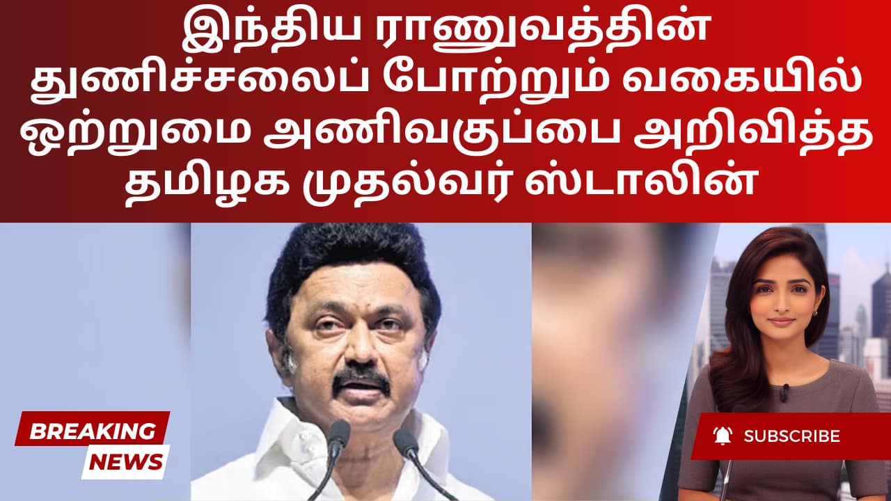 இந்திய ராணுவத்தின் துணிச்சலைப் போற்றும் வகையில் ஒற்றுமை அணிவகுப்பை அறிவித்த தமிழக முதல்வர் ஸ்டாலின்