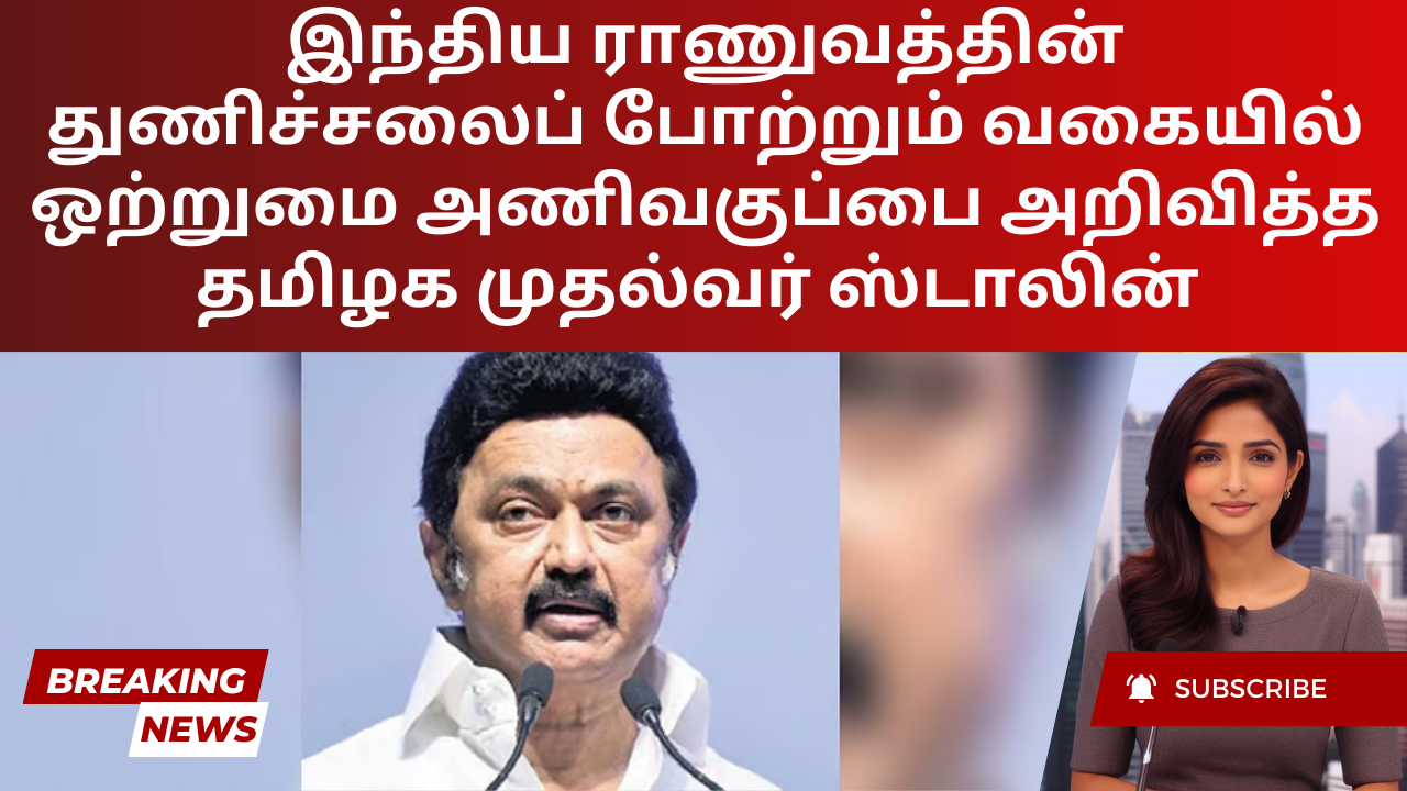 இந்திய ராணுவத்தின் துணிச்சலைப் போற்றும் வகையில் ஒற்றுமை அணிவகுப்பை அறிவித்த தமிழக முதல்வர் ஸ்டாலின்