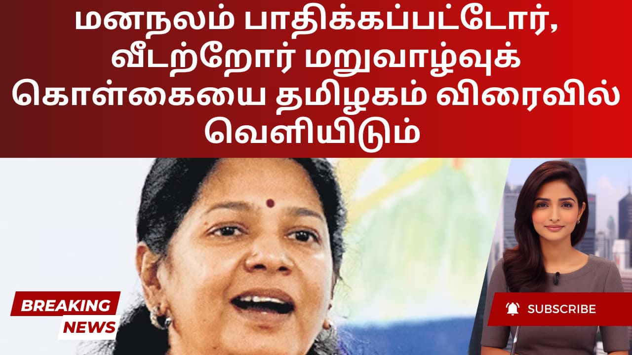 மனநலம் பாதிக்கப்பட்டோர், வீடற்றோர் மறுவாழ்வுக் கொள்கையை தமிழகம் விரைவில் வெளியிடும்
