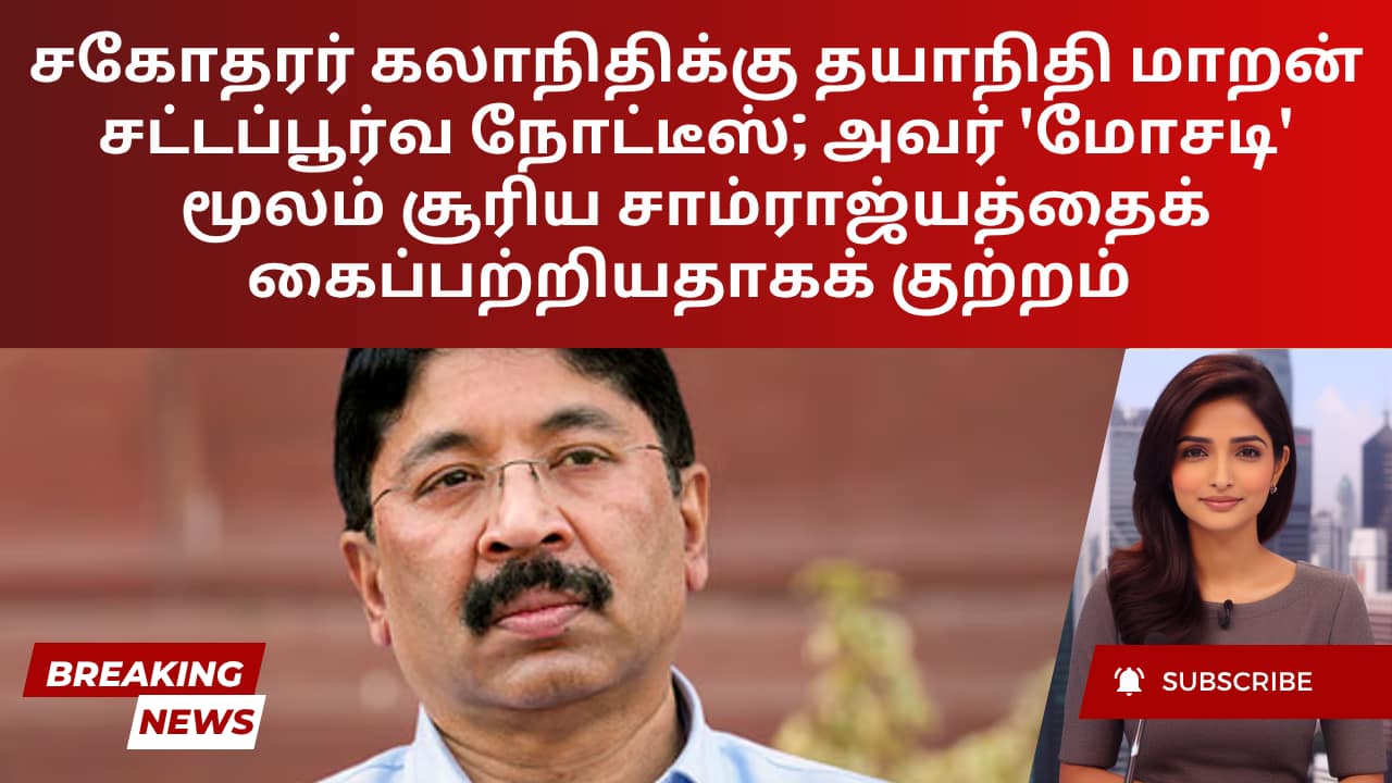 சகோதரர் கலாநிதிக்கு தயாநிதி மாறன் சட்டப்பூர்வ நோட்டீஸ்; அவர் ‘மோசடி’ மூலம் சூரிய சாம்ராஜ்யத்தைக் கைப்பற்றியதாகக் குற்றம்