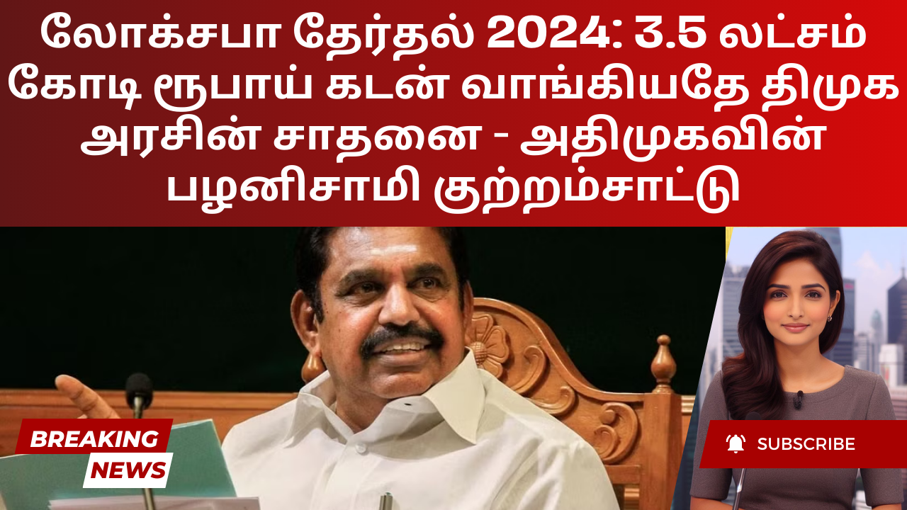 பிப்ரவரி 19ஆம் தேதி 2024-25ஆம் ஆண்டுக்கான பட்ஜெட் தாக்கலின் போது, மார்ச் 31, 2025க்குள் நிலுவையில் உள்ள கடன் ரூ. 8,33,361.80 கோடி. திமுக அரசால் பரம்பரை பரம்பரையாகப் பெற்றுள்ள நிதிச் சுமையை அடிக்கோடிட்டுக் காட்டுகிறது இந்த அதிர்ச்சியூட்டும் புள்ளிவிபரம், மக்கள் நலன் மீதான தவறான நிர்வாகம் மற்றும் புறக்கணிப்புக்கு சான்றாக அதிமுக உடனடியாக விமர்சித்து வருகிறது.