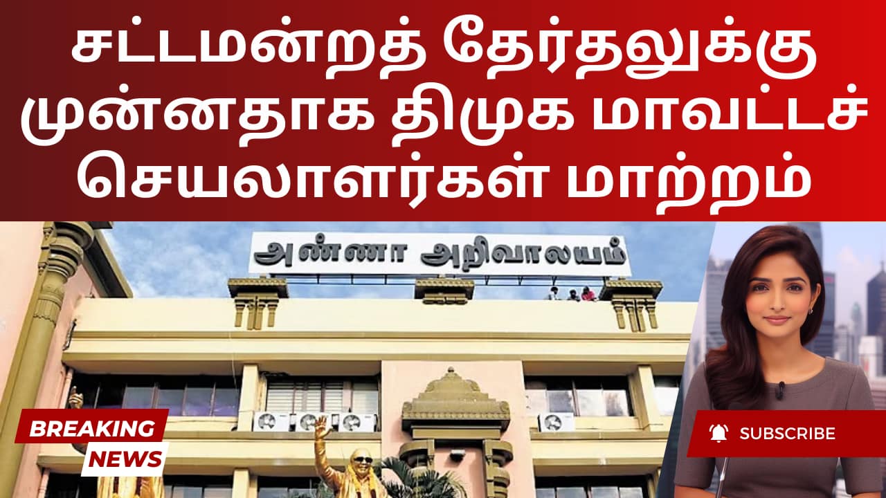சட்டமன்றத் தேர்தலுக்கு முன்னதாக, திமுக தனது மாவட்டச் செயலாளர்களை மாற்றி அமைத்துள்ளது, புதிய மாவட்டப் பொறுப்பாளர்களை நியமித்துள்ளது மற்றும் தொகுதிகளை மறு ஒதுக்கீடு செய்துள்ளது. குறிப்பாக மேற்குப் பகுதியில் அதிக இடங்களைப் பெறுவதற்கான கட்சியின் நோக்கத்தை இந்த மூலோபாய நடவடிக்கை குறிக்கிறது. பவானி மற்றும் பெருந்துறை தொகுதிகளை உள்ளடக்கிய ஈரோடு மத்திய மாவட்டத்தை மேற்பார்வையிடும் முன்னாள் அமைச்சர் தோப்பு என் டி வெங்கடாசலம் முக்கிய நியமனங்களில் ஒருவர். சில ஆண்டுகளுக்கு முன்பு அதிமுகவிலிருந்து திமுகவுக்கு மாறிய வெங்கடாசலம், பெருந்துறையில் கணிசமான செல்வாக்கைக் கொண்டுள்ளார், மேலும் தற்போது திமுகவுக்கு வரலாற்று ரீதியாக கடினமான தொகுதியான பவானியில் அதிமுகவின் கே சி கருப்பண்ணனை தோற்கடிக்கும் சவாலை எதிர்கொள்கிறார்.