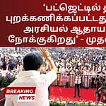 எதிர்க்கட்சிகளை நேரடியாகக் குறிப்பிடாமல், போட்டியாளர்களை கடுமையாக விமர்சித்த ஸ்டாலின், தேர்தலுக்கு முன்பே தங்கள் தவிர்க்க முடியாத தோல்வியை எதிர்கொண்டதாகவும், மக்களின் தீர்ப்பை எதிர்கொள்வதை விட பின்வாங்கத் தேர்ந்தெடுத்ததாகவும் குறிப்பிட்டார். எதிர்க்கட்சிகளின் செல்வாக்கு குறைந்து வருவதை பிரதிபலிக்கும் வகையில், இந்த பின்னடைவை தமிழ்நாடு ஏற்கனவே முன்னறிவித்திருந்தது என்று அவர் வலியுறுத்தினார். விக்கிரவாண்டி இடைத்தேர்தலில் தொடங்கி தேர்தல் களத்தில் அதிமுக இல்லாதது, கட்சியை மனச்சோர்வடையச் செய்த தொடர்ச்சியான தோல்விகளின் ஒரு பகுதியாகும்.