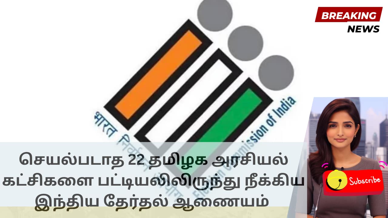செயல்படாத 22 தமிழக அரசியல் கட்சிகளை பட்டியலிலிருந்து நீக்கிய இந்திய தேர்தல் ஆணையம்