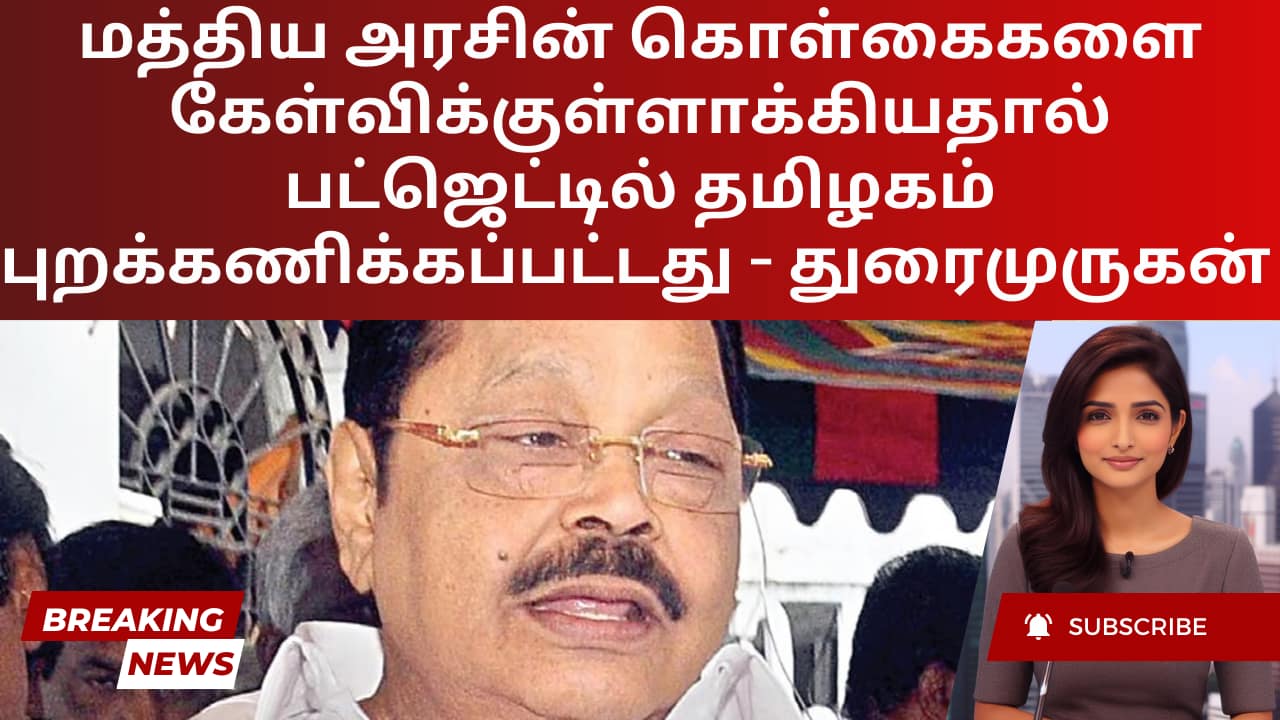 மத்திய அரசின் கொள்கைகளை கேள்விக்குள்ளாக்கியதால் பட்ஜெட்டில் தமிழகம் புறக்கணிக்கப்பட்டது – துரைமுருகன்