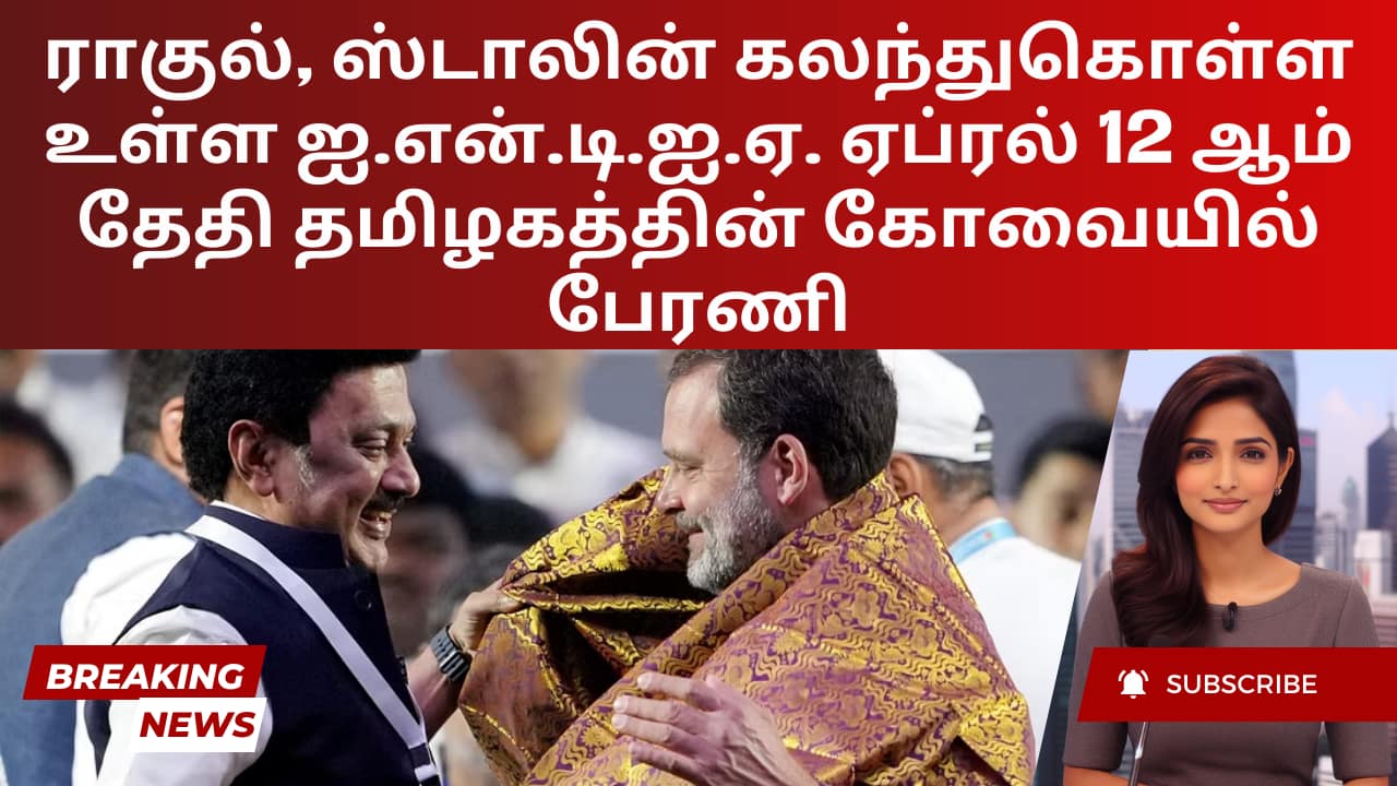ராகுல், ஸ்டாலின் கலந்துகொள்ள உள்ள ஐ.என்.டி.ஐ.ஏ. ஏப்ரல் 12-ஆம் தேதி தமிழகத்தின் கோவையில் பேரணி