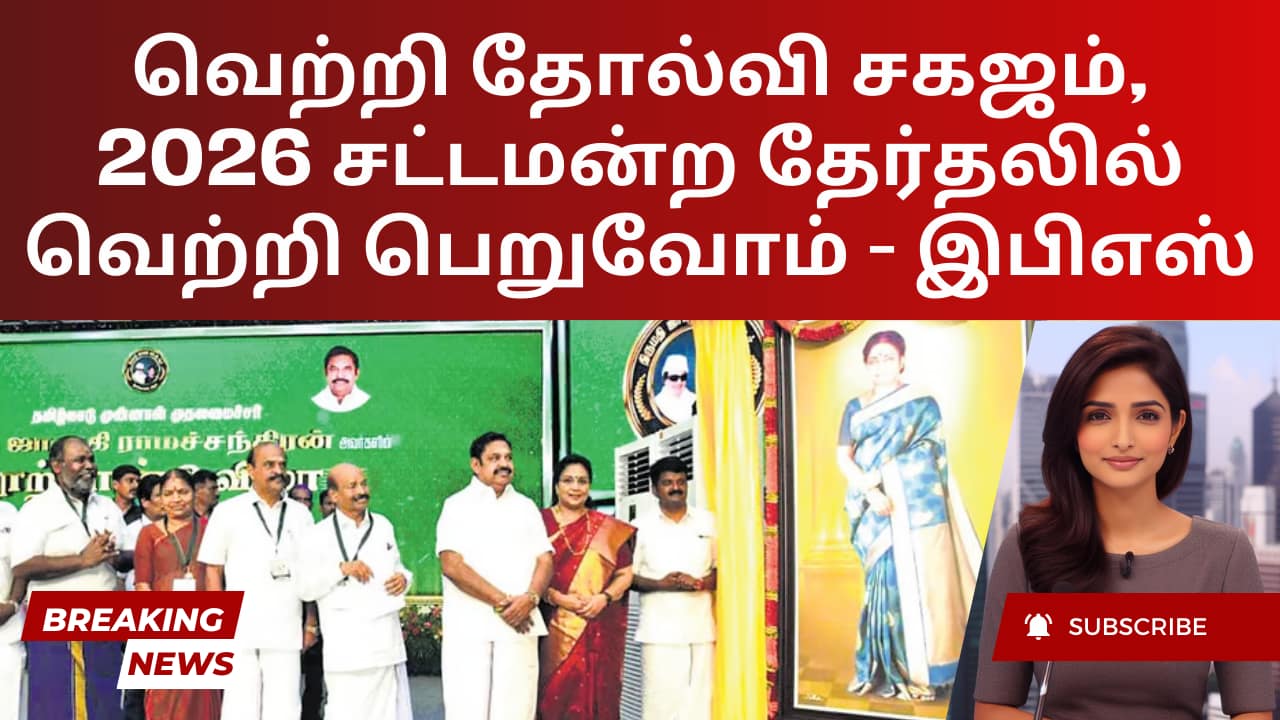அதிமுக பொதுச் செயலாளர் எடப்பாடி கே பழனிசாமி, 2026 சட்டமன்றத் தேர்தலில் தனது கட்சி வெற்றி பெறும் என்று நம்பிக்கை தெரிவித்தார், தேர்தல் வெற்றி தோல்விகள் இயற்கையான சுழற்சியின் ஒரு பகுதி என்பதை வலியுறுத்தினார். அக்கட்சியின் நிறுவனர் எம் ஜி ராமச்சந்திரனின் மனைவி ஜானகி ராமச்சந்திரனின் பிறந்தநாள் நூற்றாண்டு விழா சென்னையில் நடைபெற்ற நிகழ்ச்சியில் பேசிய அவர், அதிமுக எப்போதுமே சவால்களில் இருந்து மீண்டுள்ளது என்று கூறினார். தேர்தல் அறிவிக்கைக்கு இன்னும் 15 மாதங்கள் மட்டுமே உள்ளது என்பதை நினைவூட்டிய அவர், கட்சி உறுப்பினர்களை விடாமுயற்சியுடன் தயாராகுமாறு கேட்டுக் கொண்டார்.