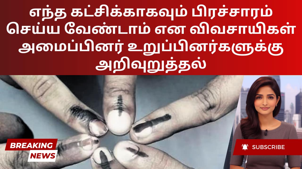 எந்த கட்சிக்காகவும் பிரச்சாரம் செய்ய வேண்டாம் என விவசாயிகள் அமைப்பினர் உறுப்பினர்களுக்கு அறிவுறுத்தல்