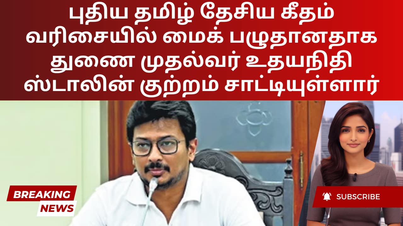 புதிய தமிழ் தேசிய கீதம் வரிசையில் மைக் பழுதானதாக துணை முதல்வர் உதயநிதி ஸ்டாலின் குற்றம் சாட்டியுள்ளார்