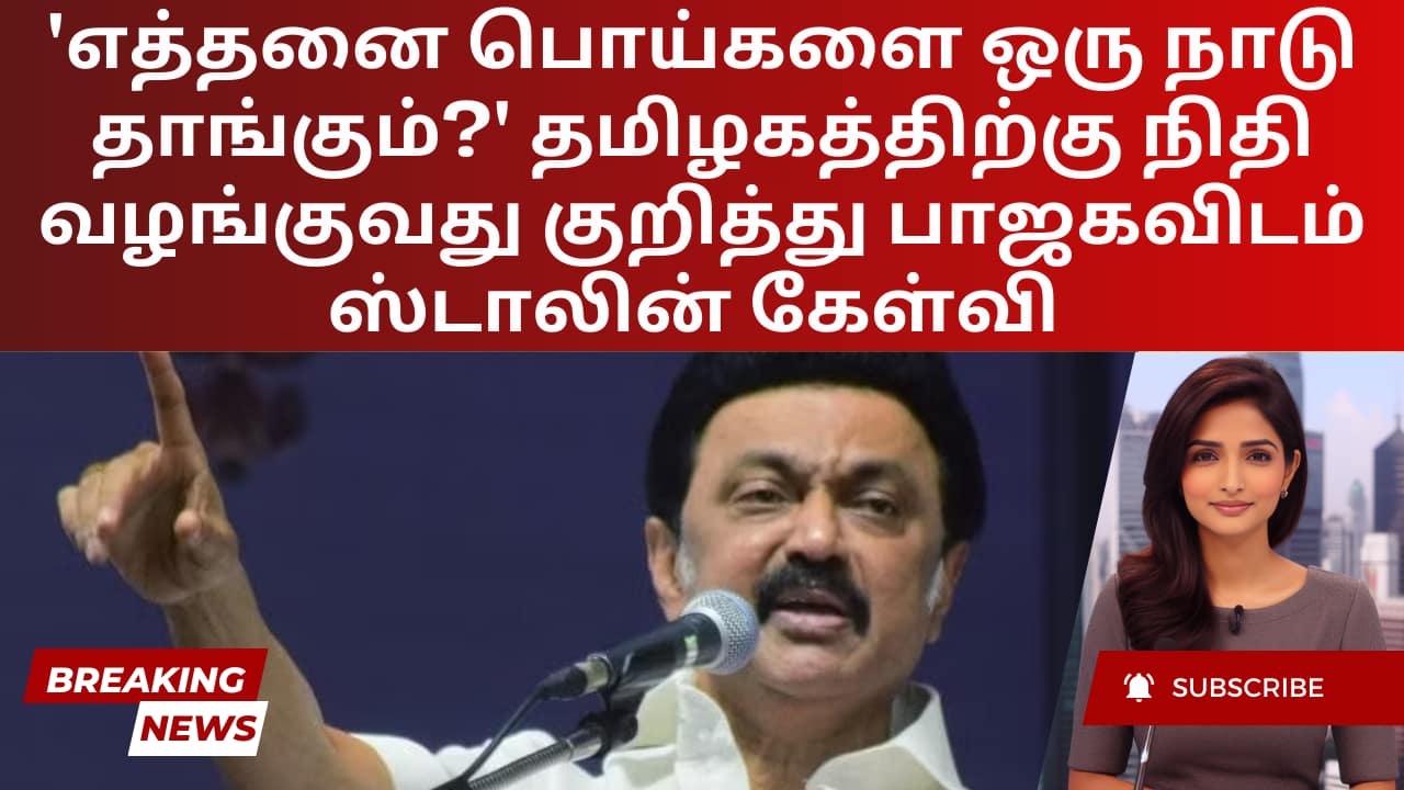 தமிழகத்தின் வளர்ச்சிக்காக ஒதுக்கப்பட்ட நிதி குறித்து பாரதிய ஜனதா அரசு கூறிவருவதை தமிழக முதல்வர் ஸ்டாலின் கடுமையாக விமர்சித்துள்ளார். அவர் வலியுறுத்தல்களை “முழுமையான பொய்கள்” என்று முத்திரை குத்தினார், குறிப்பாக 2014-ல் 10 லட்சம் கோடி ரூபாய் ஒதுக்கப்பட்டதை மறுத்தார். சென்னை மெட்ரோ போன்ற திட்டங்களுக்கு உண்மையில் வழங்கப்படாத தொகையைச் சேர்த்து பாஜக புள்ளிவிவரங்களை உயர்த்துவதாக ஸ்டாலின் குற்றம் சாட்டினார்.