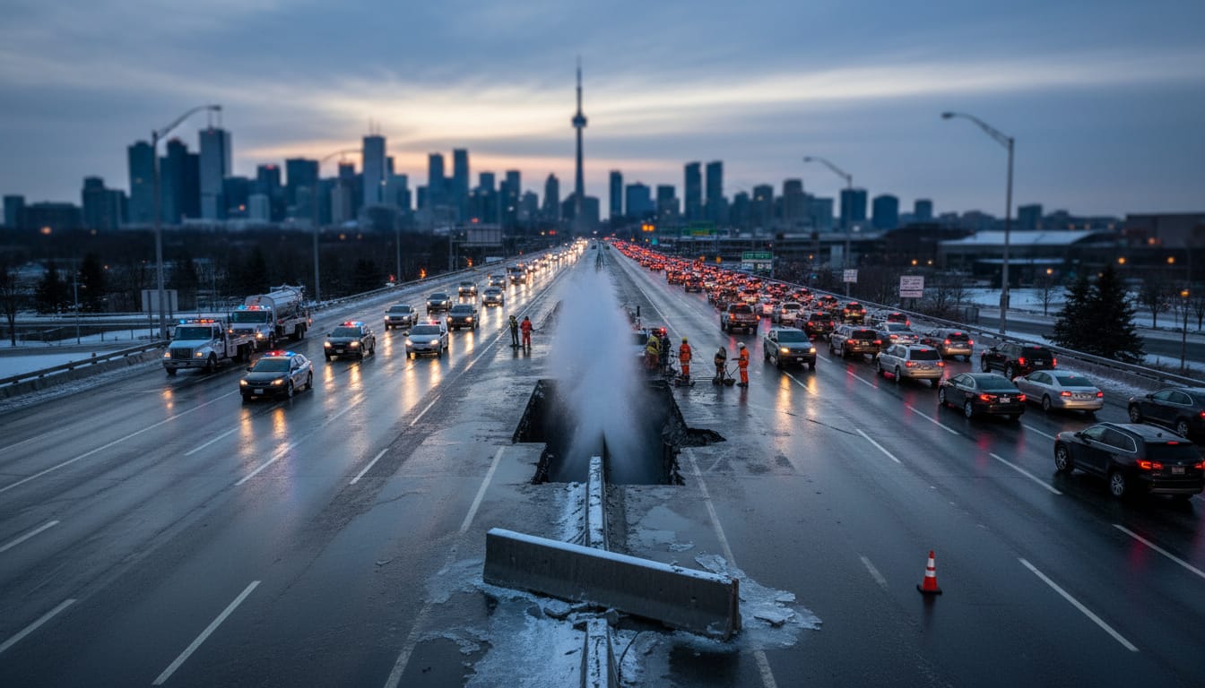 டொராண்டோ மாநகரின் மிக முக்கியமான போக்குவரத்து நரம்பாகக் கருதப்படும் கார்டினர் எக்ஸ்பிரஸ்வே (Gardiner Expressway) பகுதியில் இன்று காலை ஏற்பட்ட பிரதான நீர் குழாய் உடைப்பு காரணமாக, நகரின் போக்குவரத்து ஒட்டுமொத்தமாக நிலைகுலைந்துள்ளது. பார்க் லான் சாலைக்கு (Park Lawn Road) மேற்கே அமைந்துள்ள பகுதியில் இந்த விபத்து நிகழ்ந்துள்ளதாக டொராண்டோ தீயணைப்புத் துறை அதிகாரப்பூர்வமாக அறிவித்துள்ளது. அதிகாலை வேளையில் ஏற்பட்ட இந்த குழாய் உடைப்பால், நெடுஞ்சாலையின் பெரும் பகுதி நீரில் மூழ்கியது. தற்போது டொராண்டோவில் நிலவி வரும் கடும் குளிர்கால தட்பவெப்பநிலை காரணமாக, சாலையில் தேங்கியுள்ள நீர் உடனடியாக உறைந்து ஆபத்தான பனிக்கட்டியாக (Black Ice) மாறி வருகிறது. இது வாகனங்கள் வழுக்கிச் செல்லும் அபாயத்தை ஏற்படுத்தியுள்ளதால், பாதுகாப்பு கருதி கார்டினர் எக்ஸ்பிரஸ்வேயின் இரு திசைகளிலும் தலா இரண்டு பாதைகள் உடனடியாக மூடப்பட்டுள்ளன. சம்பவ இடத்திற்கு விரைந்துள்ள மாநகராட்சி ஊழியர்கள் மற்றும் தொழில்நுட்பக் குழுவினர், குழாய் உடைப்பைச் சீரமைக்கும் பணிகளில் தீவிரமாக ஈடுபட்டுள்ளனர். இருப்பினும், சாலையின் மேற்பரப்பில் ஏற்பட்டுள்ள சேதங்கள் மற்றும் உறைந்துள்ள பனிக்கட்டிகளை அகற்றுவதற்கு அதிக நேரம் எடுக்கும் என்பதால், இந்த போக்குவரத்து நெரிசல் இன்று நாள் முழுவதும் நீடிக்க வாய்ப்புள்ளதாக எச்சரிக்கப்பட்டுள்ளது. போக்குவரத்து காவல்துறை அதிகாரிகள் சம்பவ இடத்தில் இருந்து வாகனங்களை மாற்றுப் பாதையில் திருப்பி விடுகின்றனர். அலுவலகம் செல்வோர் மற்றும் அத்தியாவசிய தேவைகளுக்காக இந்த நெடுஞ்சாலையைப் பயன்படுத்துவோர் பெரும் தாமதத்தை எதிர்கொள்ள நேரிடும் என்பதால், மாற்று வழிகளைத் திட்டமிடுமாறு அறிவுறுத்தப்பட்டுள்ளனர். குறிப்பாக சாலையின் தரம் மற்றும் வாகனங்களின் பாதுகாப்பு குறித்து முழுமையான ஆய்வு செய்யப்பட்ட பின்னரே, மூடப்பட்ட பாதைகள் மீண்டும் திறக்கப்படும் என டொராண்டோ தீயணைப்புத் துறை தெரிவித்துள்ளது. குளிர்கால உள்கட்டமைப்பு சவால்களால் ஏற்படும் இத்தகைய பாதிப்புகள் பொதுமக்களின் இயல்பு வாழ்க்கையை வெகுவாகப் பாதித்துள்ளன.
