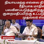 புதன்கிழமை பதிவான பல கொலைகள் குறித்து எதிர்க்கட்சித் தலைவர் எடப்பாடி கே பழனிசாமி எழுப்பிய கவலைகளுக்கு பதிலளித்த ஸ்டாலின், குற்றங்களைத் தடுக்க காவல்துறை தடுப்பு மற்றும் எதிர்வினை நடவடிக்கைகளை எடுத்து வருவதாக விளக்கினார். மீண்டும் மீண்டும் குற்றவாளிகள் மற்றும் குண்டர்கள் கூர்ந்து கண்காணிக்கப்பட்டு, தேவைப்படும்போது குண்டர் சட்டத்தின் கீழ் தடுத்து வைக்கப்படுகிறார்கள் என்று அவர் வலியுறுத்தினார். மேலும், குற்றவாளிகள் சட்டத்தின் முன் நிறுத்தப்படுவதை உறுதி செய்வதில் அரசாங்கம் கவனம் செலுத்தி வருகிறது, இதன் விளைவாக 2023 ஆம் ஆண்டில் 181 வரலாற்றுத் தாள்களும் 2024 ஆம் ஆண்டில் 242 பேரும் குற்றவாளிகளாக அறிவிக்கப்பட்டனர். இந்த தண்டனைகளில், 150 குற்றவாளிகளுக்கு ஆயுள் தண்டனை அல்லது 10 ஆண்டுகளுக்கும் மேலான சிறைத்தண்டனை விதிக்கப்பட்டது.