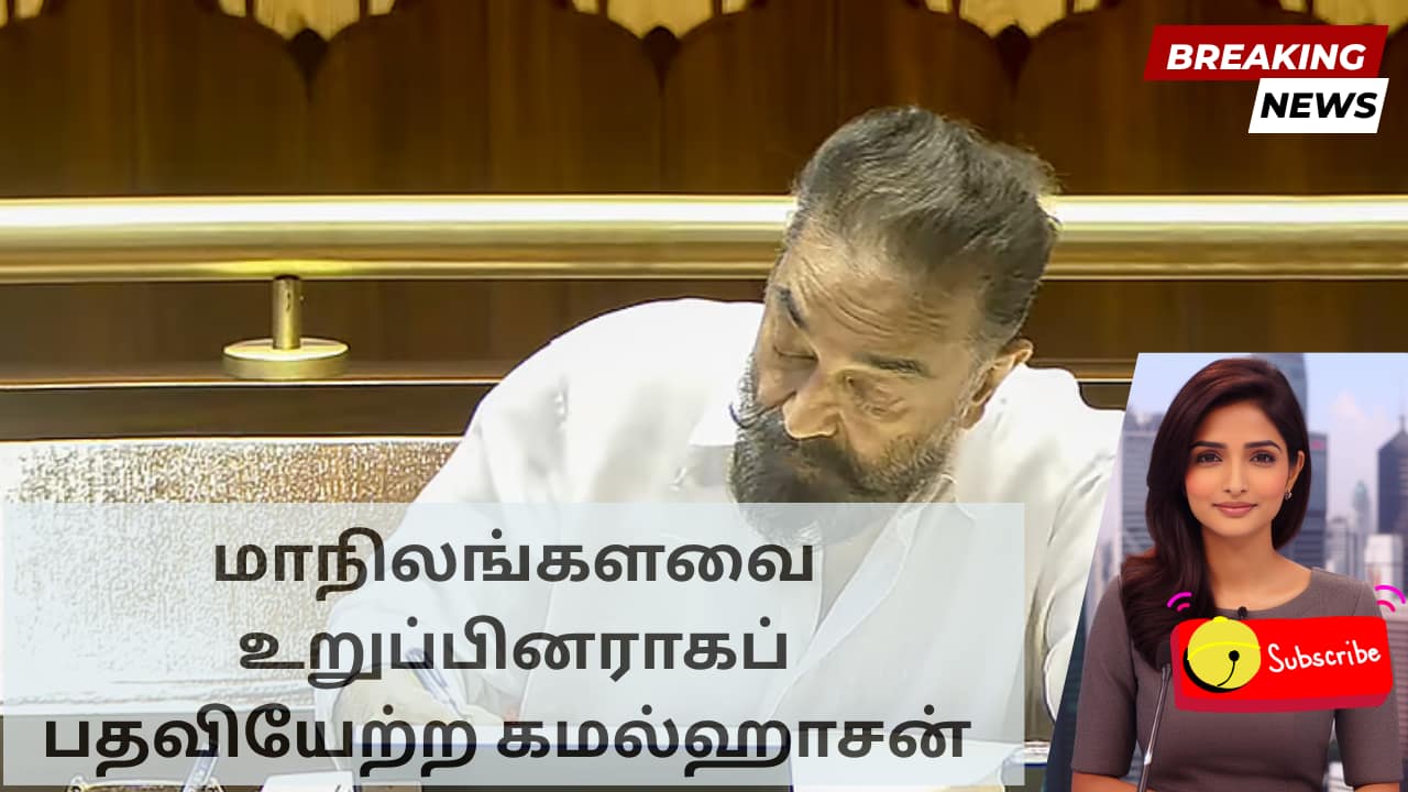 புகழ்பெற்ற நடிகரும் மக்கள் நீதி மய்யம் தலைவருமான கமல்ஹாசன் வெள்ளிக்கிழமை மாநிலங்களவையில் நாடாளுமன்ற உறுப்பினராக பதவியேற்றார், இது அவரது அரசியல் பயணத்தில் ஒரு குறிப்பிடத்தக்க மைல்கல்லைக் குறிக்கிறது. ஜூன் 12 அன்று போட்டியின்றி தேர்ந்தெடுக்கப்பட்ட கமல்ஹாசனுக்கு, 2024 மக்களவைத் தேர்தலின் போது MNM இன் ஆதரவிற்கு ஈடாக அவருக்கு ஒரு இடம் வழங்குவதாக முன்னர் உறுதியளித்திருந்த திமுக தலைமையிலான கூட்டணியின் ஆதரவு இருந்தது.