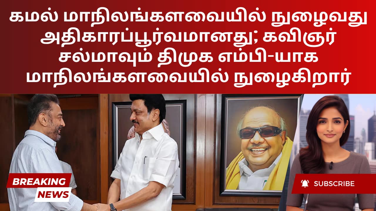 கமல் மாநிலங்களவையில் நுழைவது அதிகாரப்பூர்வமானது; கவிஞர் சல்மாவும் திமுக எம்பி-யாக மாநிலங்களவையில் நுழைகிறார்