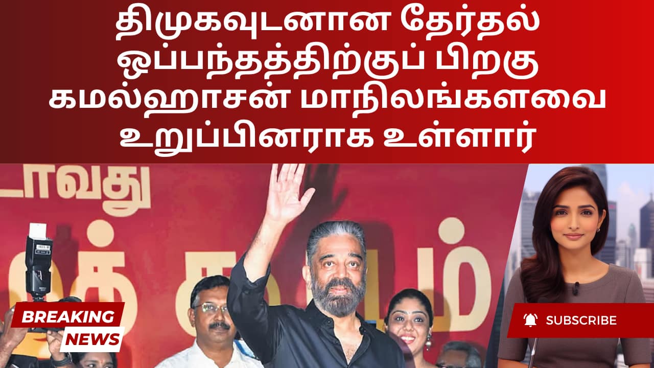 2024 மக்களவைத் தேர்தலின் போது திமுகவுடன் ஏற்பட்ட அரசியல் ஒப்பந்தத்தைத் தொடர்ந்து, மக்கள் நீதி மய்யம் தலைவர் கமல்ஹாசன் மாநிலங்களவையில் அறிமுகமாக உள்ளார். இந்த மூலோபாய கூட்டணி இப்போது நிறைவேற உள்ளது, இதன் மூலம் ஹாசனுக்கு நாடாளுமன்ற மேல்சபையில் இடம் கிடைக்கும்.