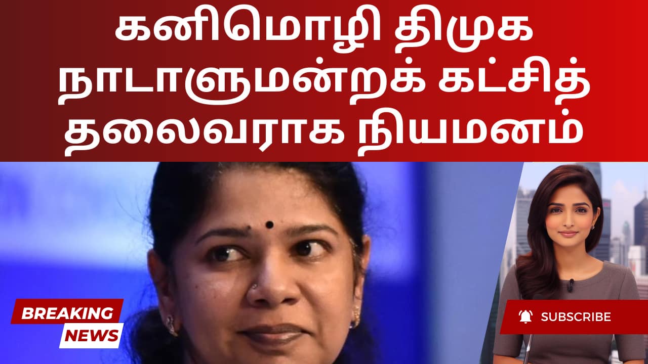 திமுகவின் துணைப் பொதுச் செயலாளரும், தூத்துக்குடி எம்பியுமான கனிமொழி கருணாநிதியை, திமுக நாடாளுமன்றக் கட்சித் தலைவராக உயர்த்தி, திமுக தலைவர் ஸ்டாலின் உத்தரவிட்டுள்ளார். முன்னதாக, அவர் மக்களவையில் கட்சியின் துணைத் தலைவராக பணியாற்றினார்.