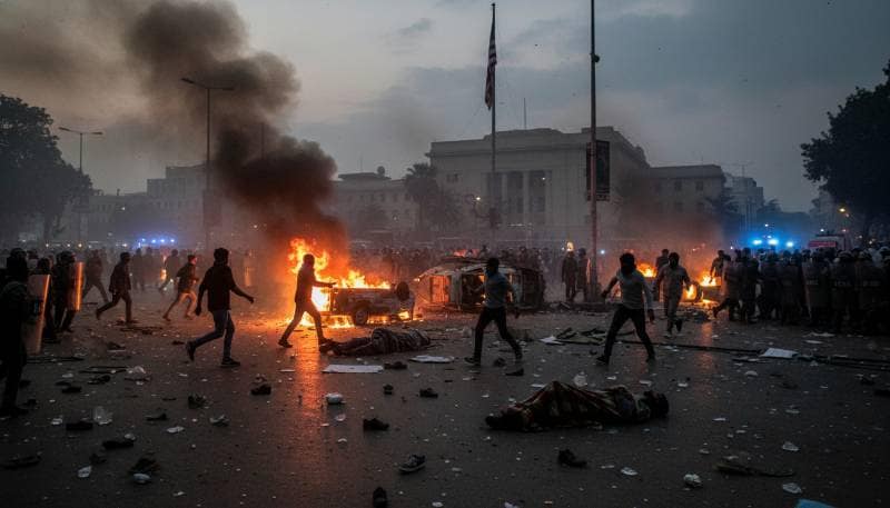 இருப்பினும், போராட்டக்காரர்கள் கற்களை வீசித் தாக்கியதோடு, பல இடங்களில் காவல்துறையினரின் வாகனங்களுக்குத் தீ வைத்தனர். இதனால் நிலைமை கட்டுக்கடங்காமல் போனது. மோதல் உச்சக்கட்டத்தை எட்டியபோது, பாதுகாப்புப் படையினர் தரப்பில் இருந்து துப்பாக்கிச் சூடு நடத்தப்பட்டதாகக் கூறப்படுகிறது. பல மணி நேரம் நீடித்த இந்த மோதலில் அந்தப் பகுதியே போர்க்களமாகக் காட்சியளித்தது. மக்கள் சிதறி ஓடிய நிலையில், தூதரகத்தைச் சுற்றியுள்ள சாலைகள் அனைத்தும் மூடப்பட்டு, அப்பகுதி முழுவதும் பாதுகாப்புப் படையினரின் கட்டுப்பாட்டுக்குள் கொண்டு வரப்பட்டது.