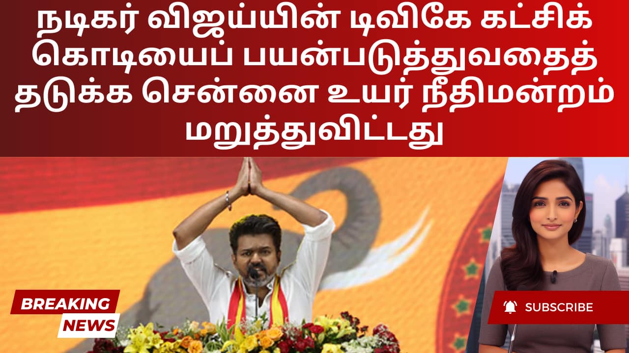 நடிகர் விஜய்யின் டிவிகே கட்சிக் கொடியைப் பயன்படுத்துவதைத் தடுக்க சென்னை உயர் நீதிமன்றம் மறுத்துவிட்டது
